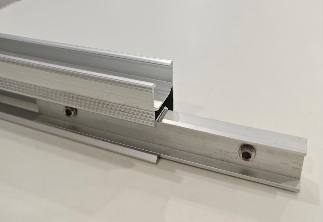 Montaż aluminiowych szyn solarnych R jest niezwykle prosty, szczególnie w przypadku łączenia dwóch szyn. Wystarczy włożyć złącze w boczny otwór i dokręcić śruby w dół. Unikalna konstrukcja złącza zapewnia jego bezpieczne zablokowanie na miejscu. Następnie zainstaluj drugą szynę w ten sam sposób, aby zakończyć połączenie